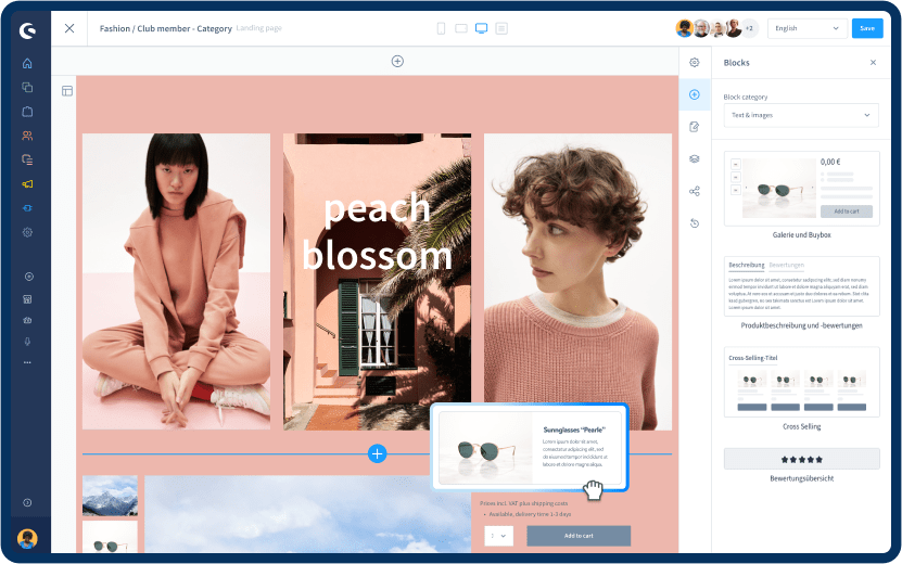 - Drag & Drop. La edición de páginas, entradas y contenido desde el back office utiliza el método de arrastrar y soltar, facilitando que cualquier usuario pueda diseñar de forma personalizada la tienda online. Con esta función se pueden crear fácilmente las páginas habituales de un e-commerce, y también crear landing pages personalizadas enfocadas en potenciar las ventas.